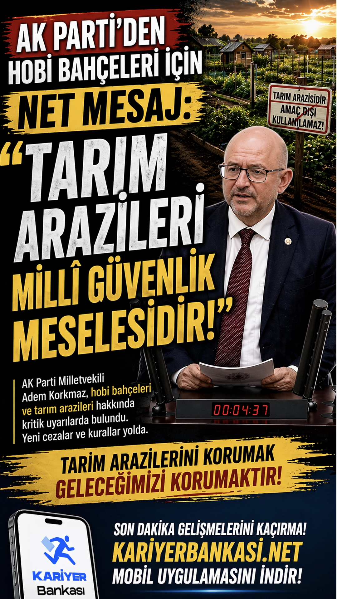 AK Parti Milletvekili Adem Korkmaz, hobi bahçeleri ve tarım arazileri hakkında kritik uyarılarda bulundu. Yeni cezalar ve kurallar yolda.
