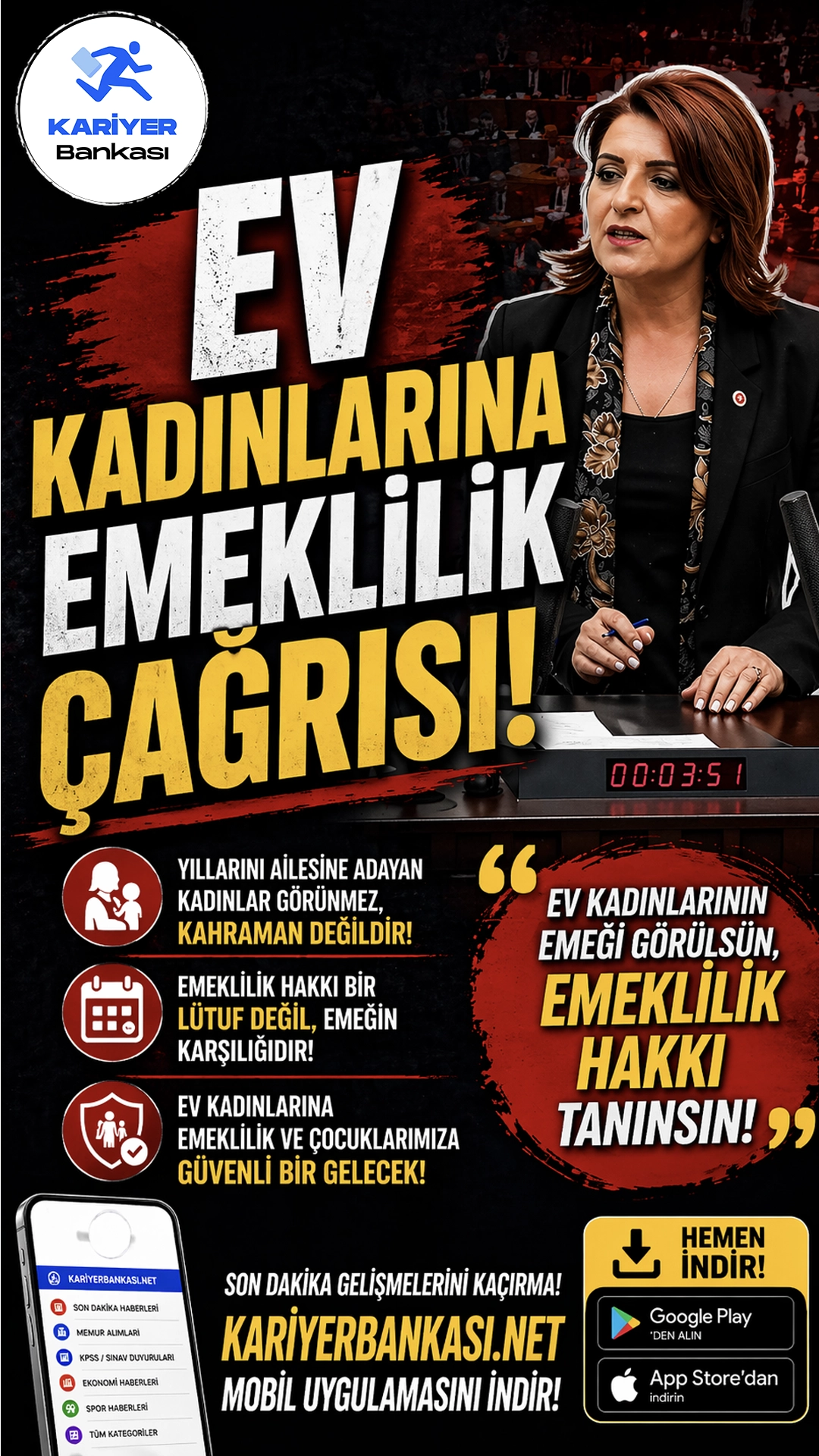 CHP Mersin Milletvekili Gülcan Kış, ev kadınlarının emeklilik hakkı ve çocukların güvenliği konularında iktidarın politikalarını eleştirdi.