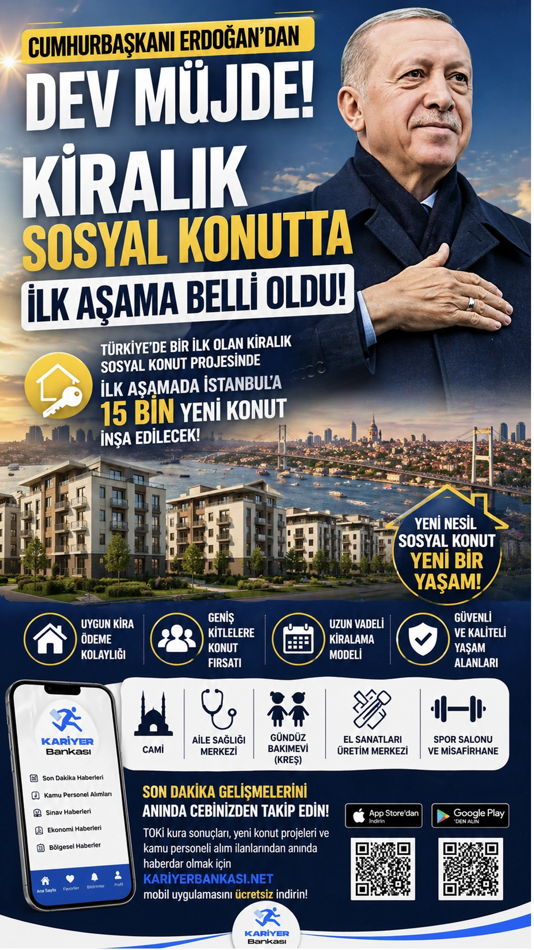 Cumhurbaşkanı Erdoğan’ın açıklamalarına göre projenin ilk adımı olan kiralık sosyal konut uygulamasında, ilk aşamada tam 15 bin konut inşa edilecek. TOKİ eliyle hayata geçirilecek bu ilk etap, pilot bölge olarak seçilen İstanbul’da başlatılacak ve hızla tamamlanarak vatandaşların hizmetine sunulacak.