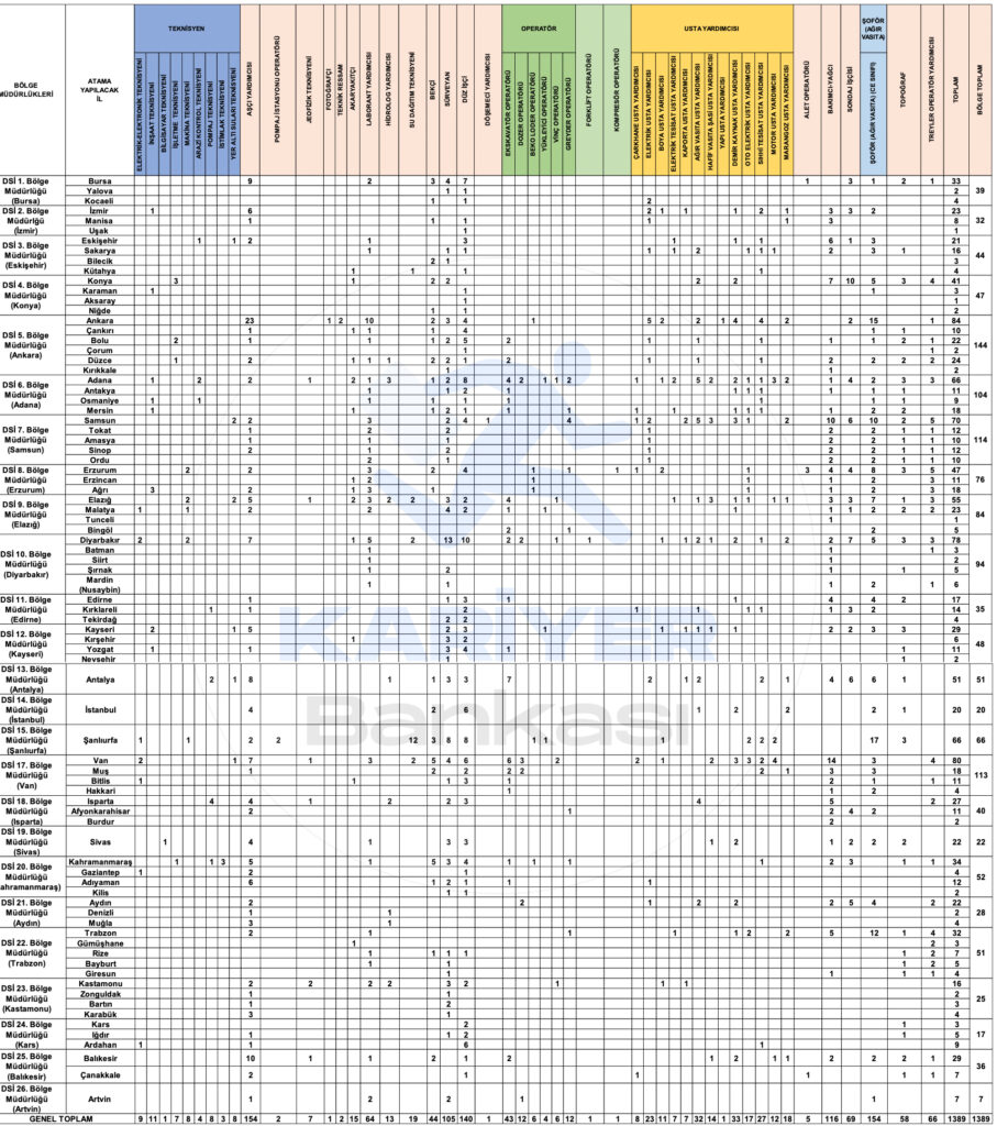 DSİ 1389 İşçi Alımı Kontenjan Dağılımı