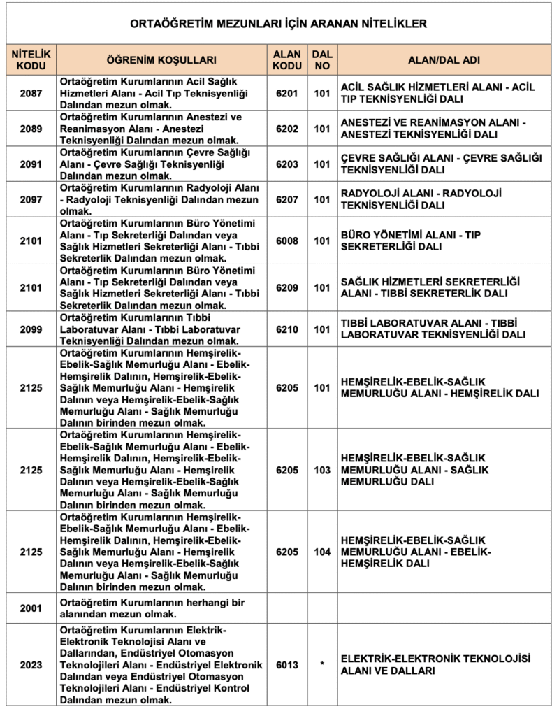 Sağlık Bakanlığı Ortaöğretim Nitelik Kodları