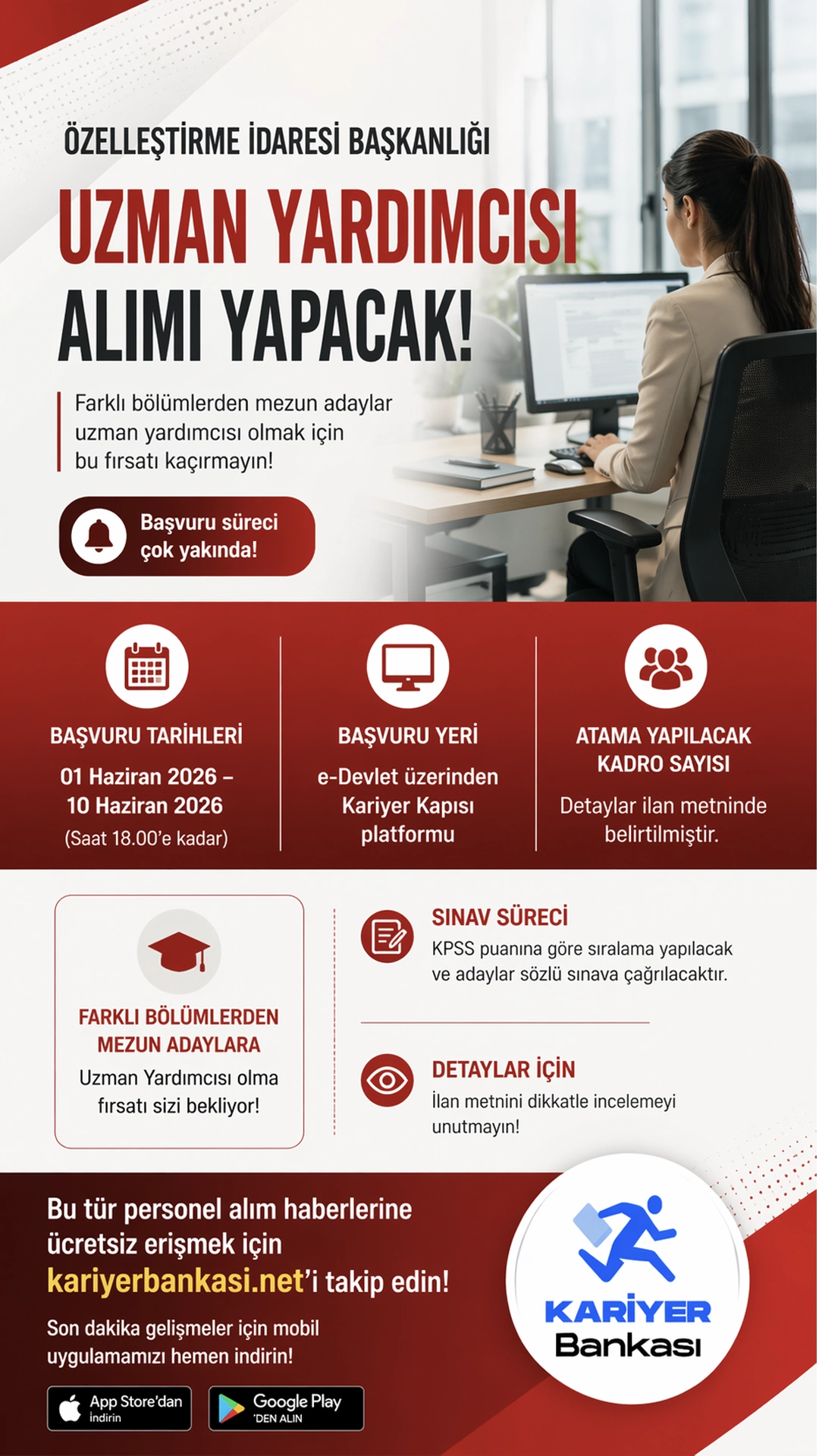 Özelleştirme İdaresi Başkanlığı, farklı bölümlerden mezun adaylar arasından uzman yardımcısı alımı yapacak. Başvuru süreci ve detaylar açıklandı.